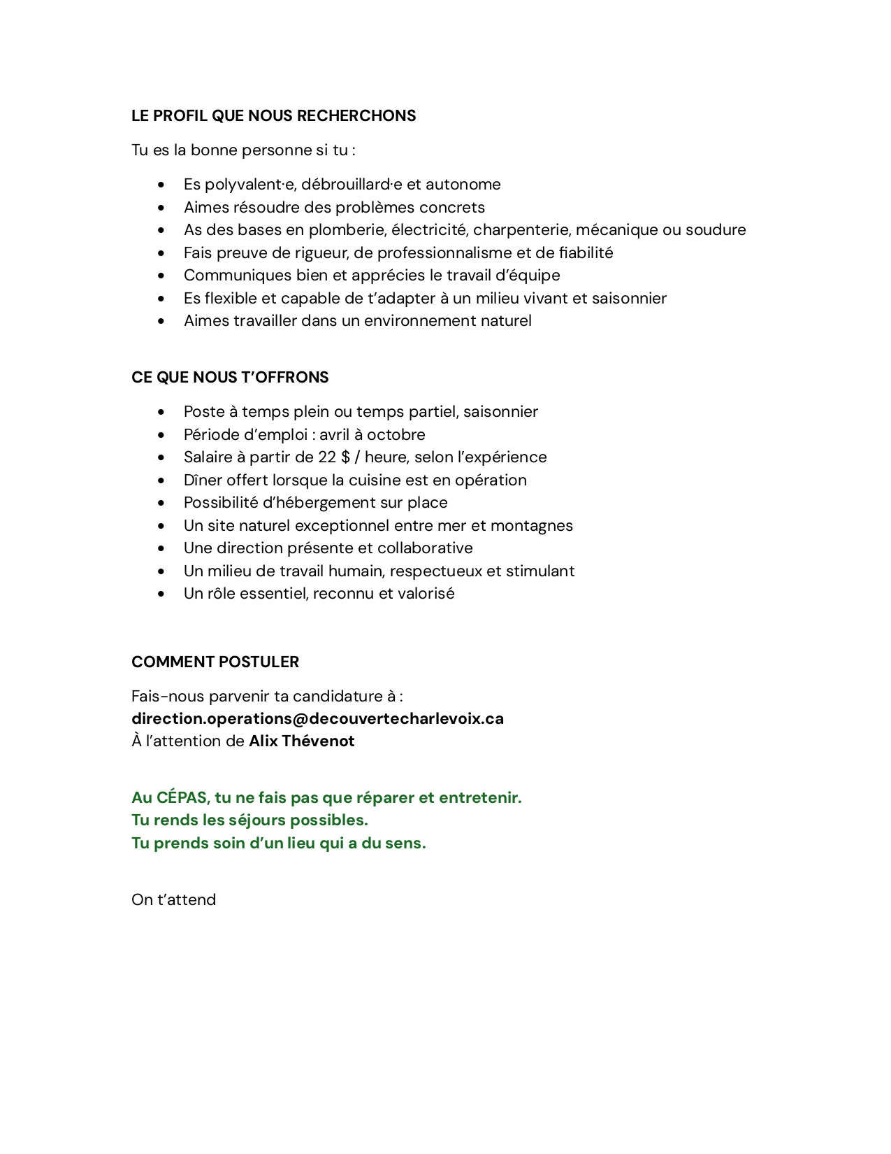 Découverte Charlevoix : Une nouvelle alliance pour le CÉPAS et le Camp Le Manoir! 03 Fév Information importante - Nouvelles